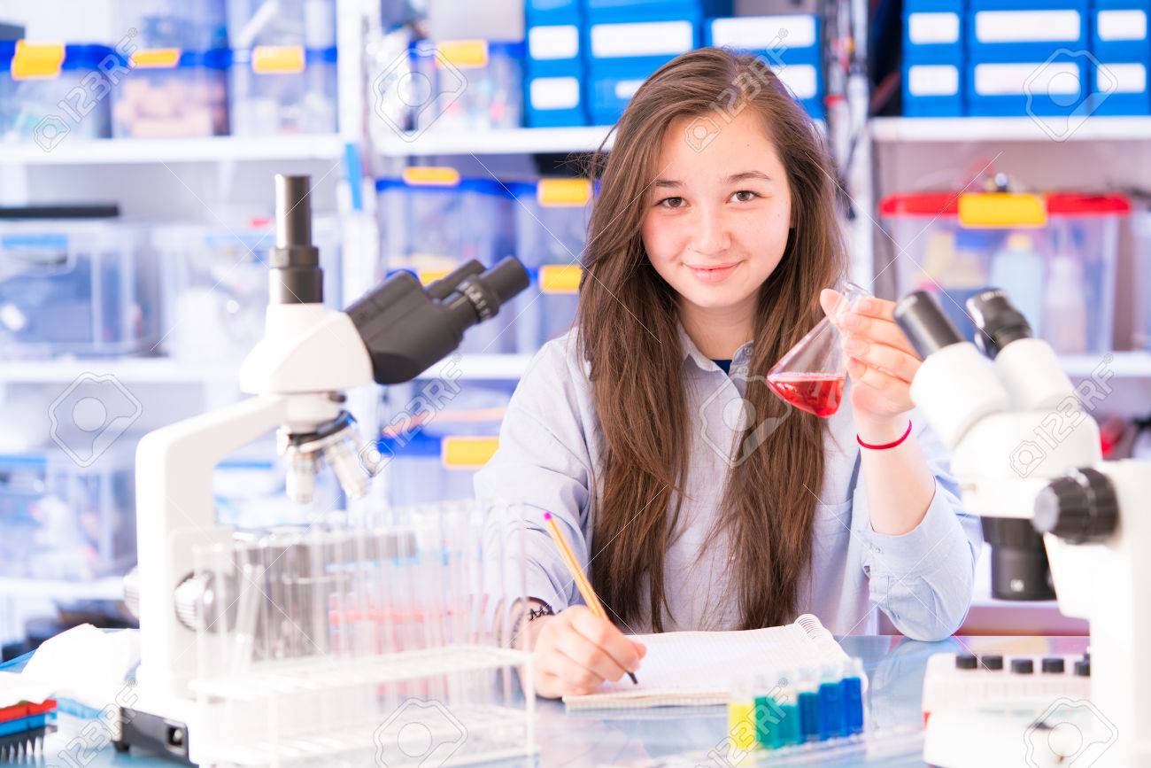 Una Adolescente En Un Laboratorio Escolar En Las Clases De Quimica Y Biologia Fotos Retratos Imagenes Y Fotografia De Archivo Libres De Derecho Image 85261055