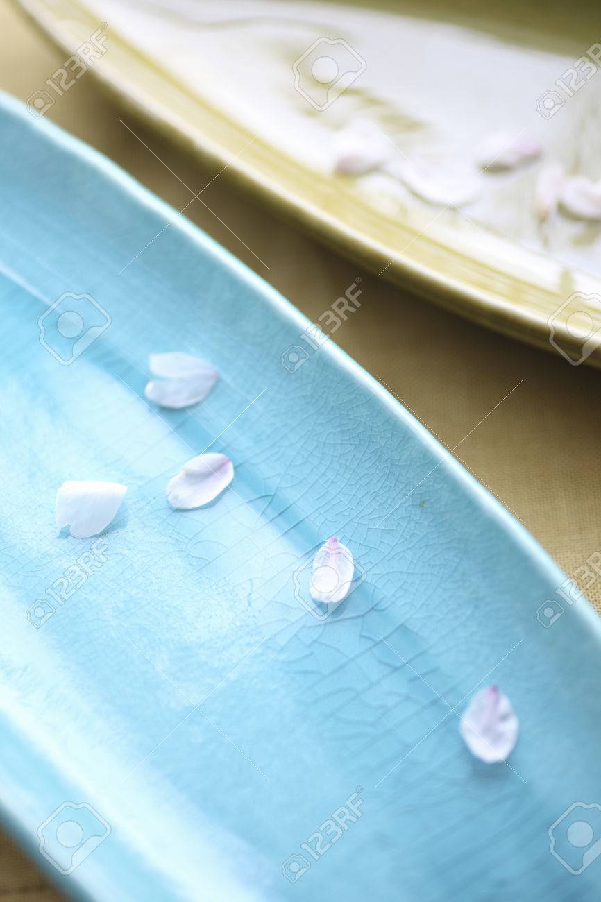 Los Petalos De Flores De Cerezo En El Plato Suma De Lapis Lazuli De Color Y De Color Verde Claro Fotos Retratos Imagenes Y Fotografia De Archivo Libres De Derecho Image 47003883