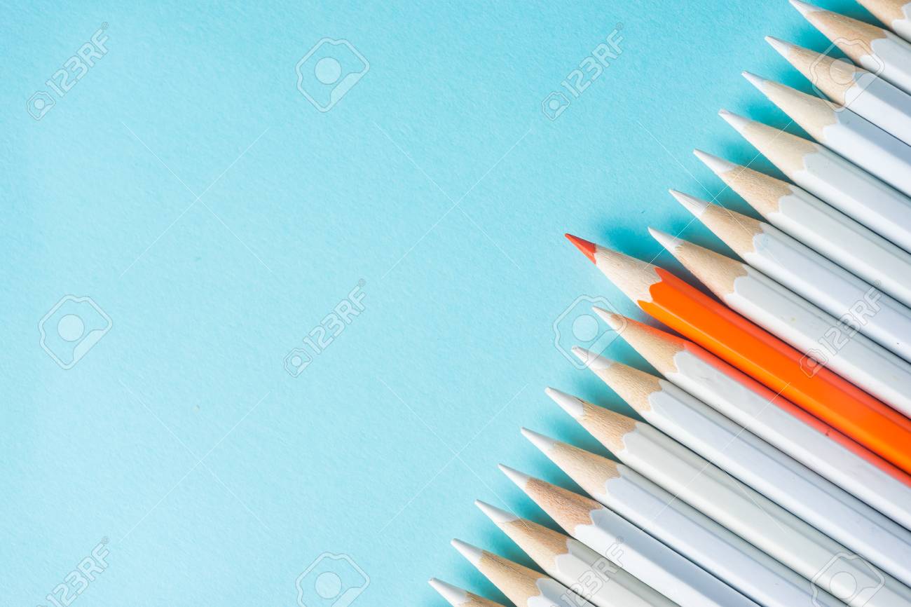 Conceito De Negocio Lote De Lapis Brancos E Lapis De Cor Em Fundo De Papel Azul E Simbolo De Luta Lideranca E Comunicacao Fotos Retratos Imagenes Y Fotografia De Archivo Libres