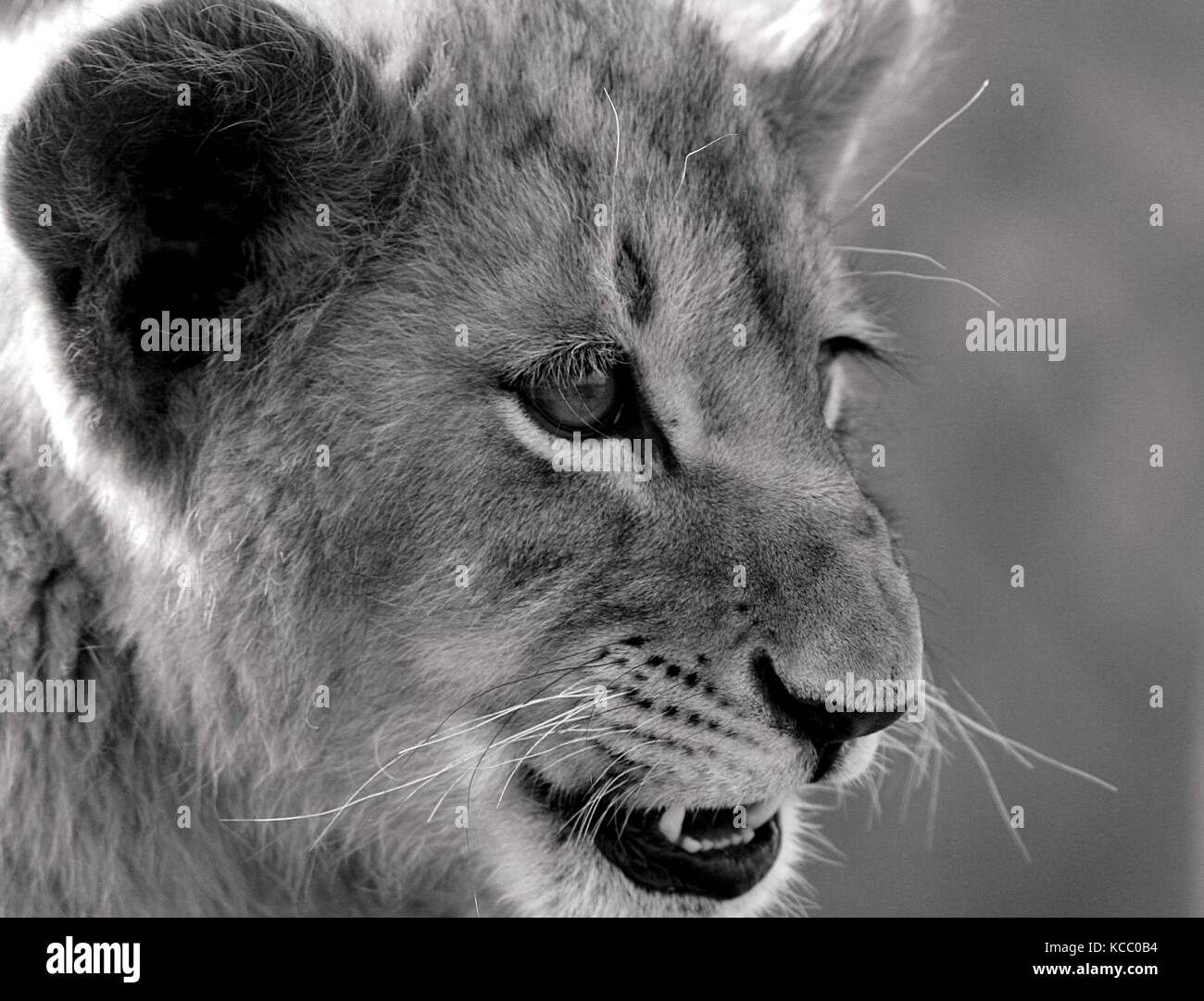 Blanco Y Negro Retrato De Un Cachorro De Leon En La Provincia De Gauteng Sudafrica Fotografia De Stock Alamy