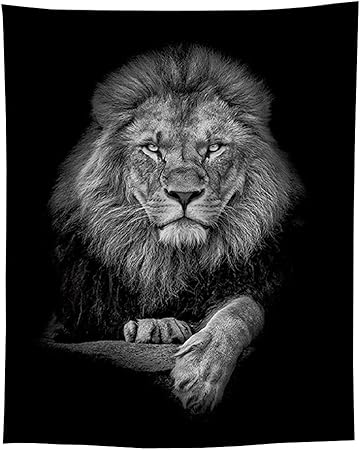 Amazon Com Tapiz De Leon Blanco Y Negro Jaye Tapiz De Leon Animal 53 9 In X 56 3 In Para Colgar En La Pared Para Oficina En Casa Home Kitchen