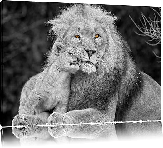 Amazon Com Hermoso Leon Con Cachorro De Leon Negro Blanco Sobre Lona Lienzo Prints Arte De La Pared Decoracion Para El Hogar 16 X12 40 X 30 Cm Home Kitchen