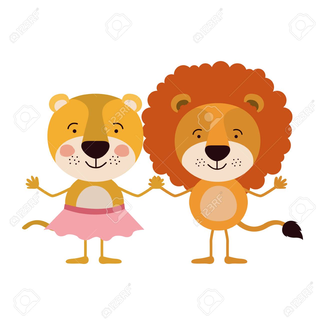 Caricatura De Colores Con Par De Leones De La Mano Ilustracion Vectorial Ilustraciones Vectoriales Clip Art Vectorizado Libre De Derechos Image 82192333