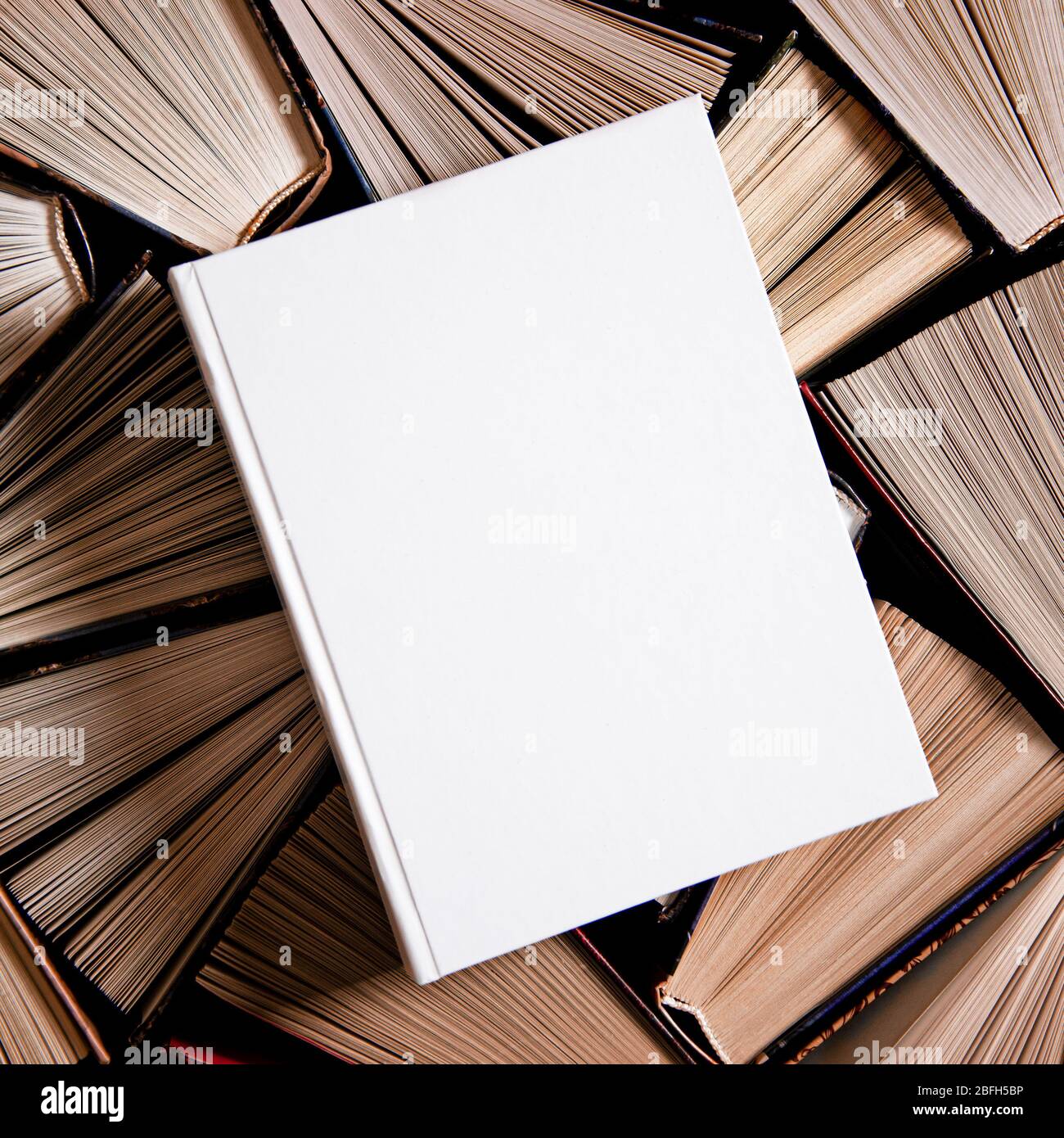 La Burla De Libros Cuadrados En Blanco Cerrados Descansa Sobre Libros Multicolores Antiguos Abiertos Fotografia De Stock Alamy