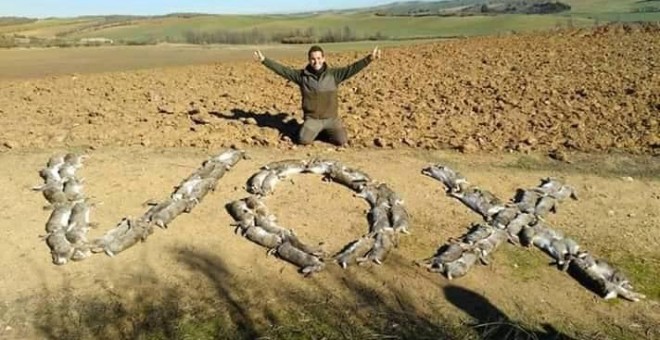 Maltrato Animal Un Joven Cazador Forma La Palabra Vox Con Decenas De Liebres Muertas Publico