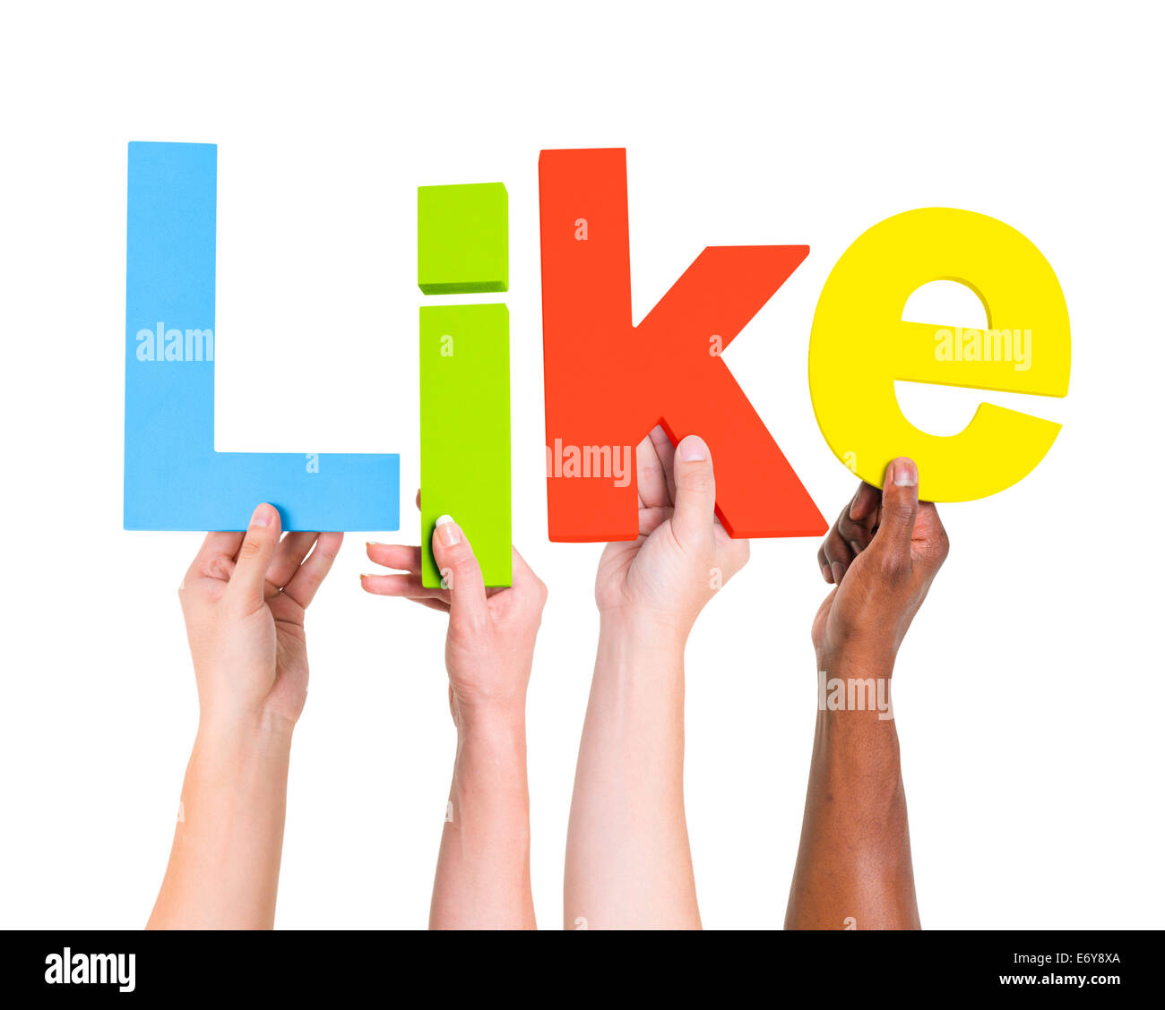 Grupo Multinacional De Personas Sosteniendo La Palabra Like Fotografia De Stock Alamy