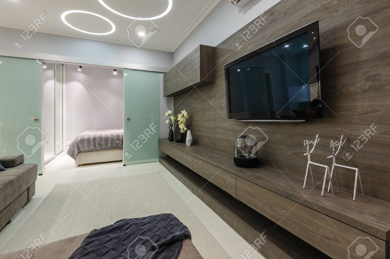 Moderno Estudio De Living Blanco De Diseno Con Puertas De Dormitorio Abiertas Fotos Retratos Imagenes Y Fotografia De Archivo Libres De Derecho Image 79806813