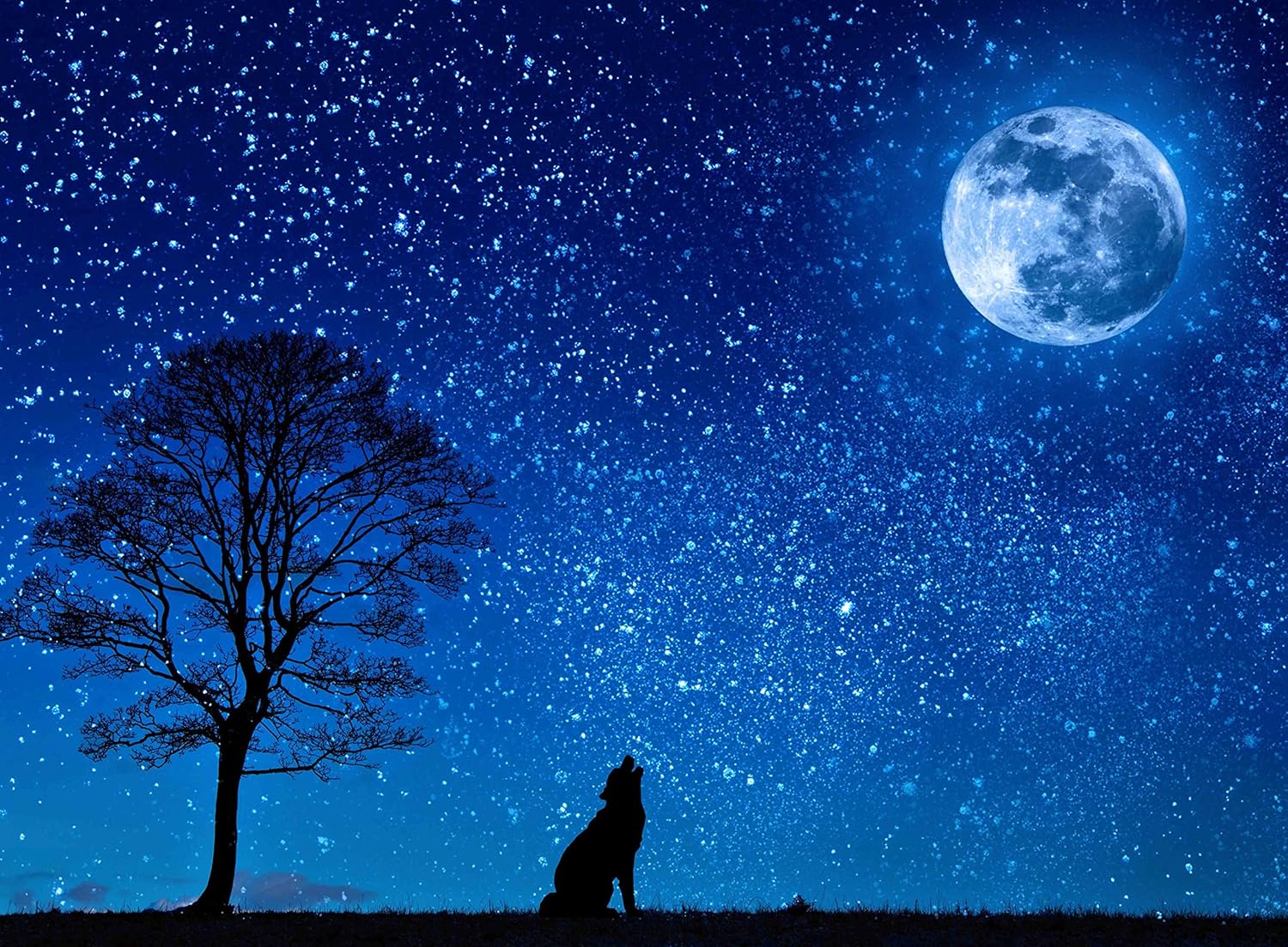 Amazon Com Adulto Puzzle Azul Noche Lobo Aullando Luna Llena 500 Pieces Toys Games