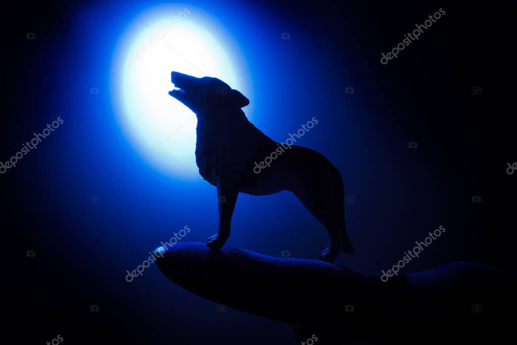 Silueta Del Lobo Aullante Contra Oscuro Tonos Fondo Brumoso Y Luna Llena O Lobo En Silueta Aullando A La Luna Llena Concepto De Horror De Halloween Foto De Stock Y Mas Banco