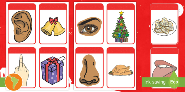 Tarjetas De Emparejar Los Cinco Sentidos Navidad