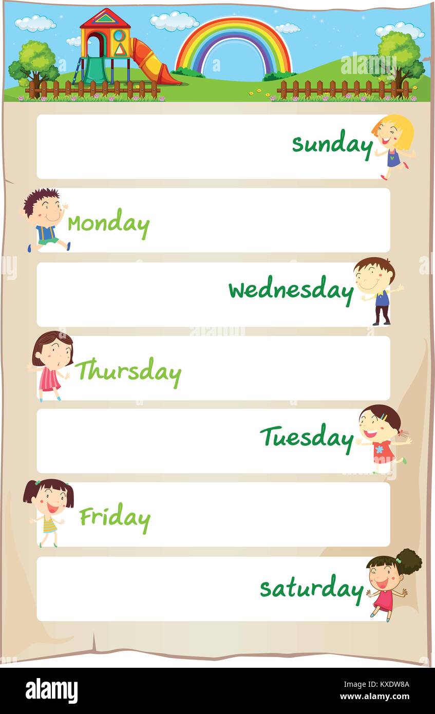 Los Dias De La Semana En Cartel Con Ninos Felices Ilustracion Imagen Vector De Stock Alamy