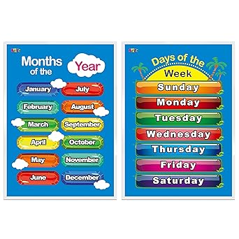 Dias De La Semana Meses Del Ano 2 Carteles Educativos Laminados Para Ninos Pequenos 43 X 23 Pulgadas Amazon Com Mx Industria Empresas Y Ciencia