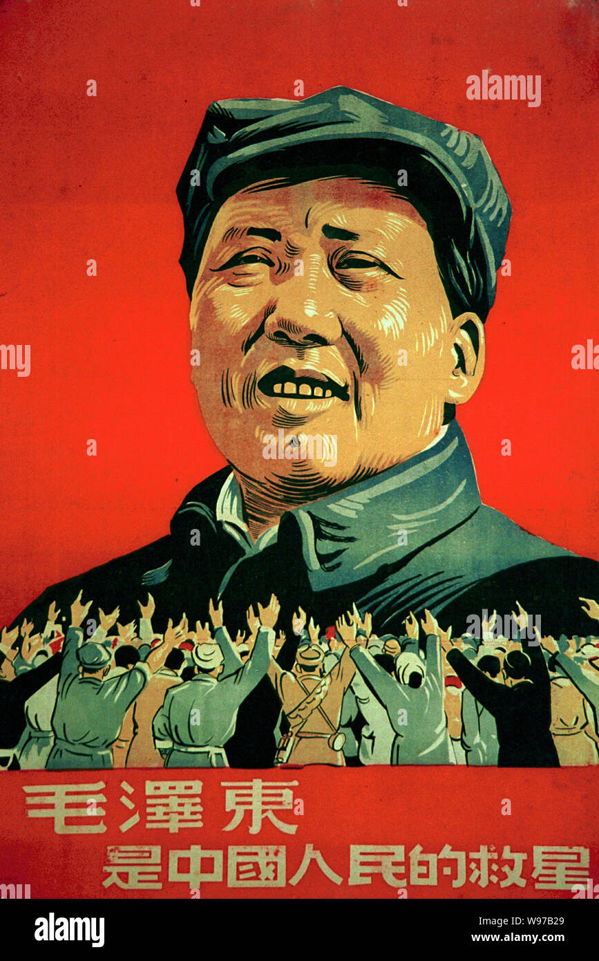 Cartel Propagandistico De Mao Zedong Mao Tse Tung Con Letreros Mao Zedong Es El Salvador Del Pueblo Chino Fotografia De Stock Alamy