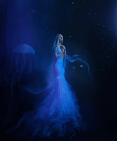 Una Medusa Fluorescente En La Acumulacion De Agua Oscura Grabacion De La Naturaleza Bonita Imagen De Fondo Hay Muchas Especies Diferentes De Medusas Fotos Retratos Imagenes Y Fotografia De Archivo Libres De
