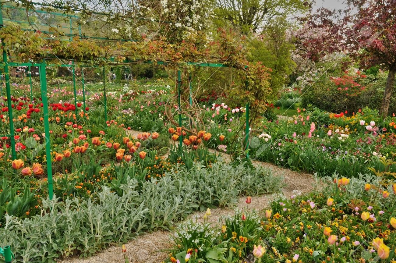 Francia Darny Claude Monet Jardin En Primavera Flores Y Lagos Se Elevaron Francia Dana El Jardin De Monet En Primavera Canstock