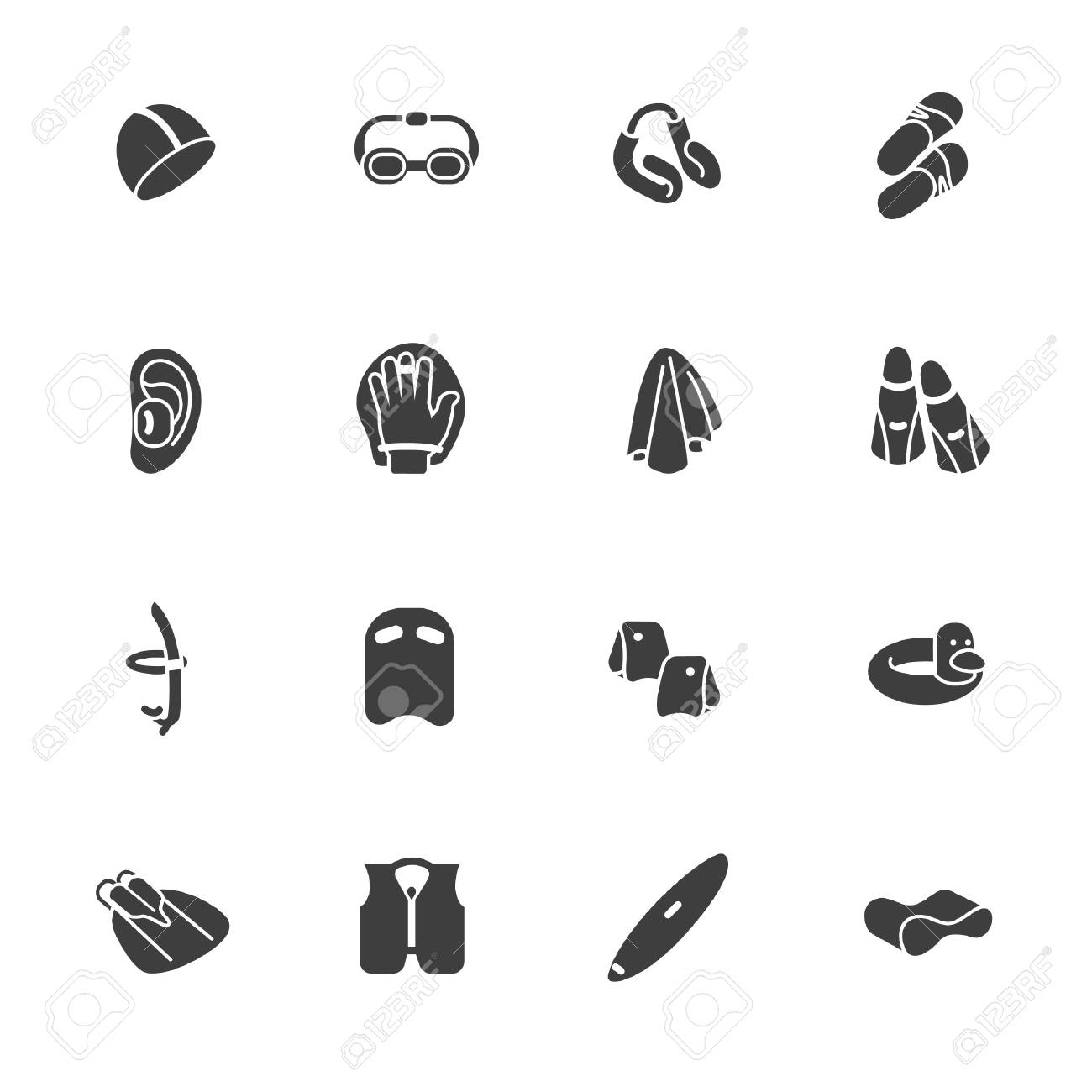 Accesorios Para Natacion Y Deportes Acuaticos En Estilo Glifo Ilustraciones Vectoriales Clip Art Vectorizado Libre De Derechos Image 88756099