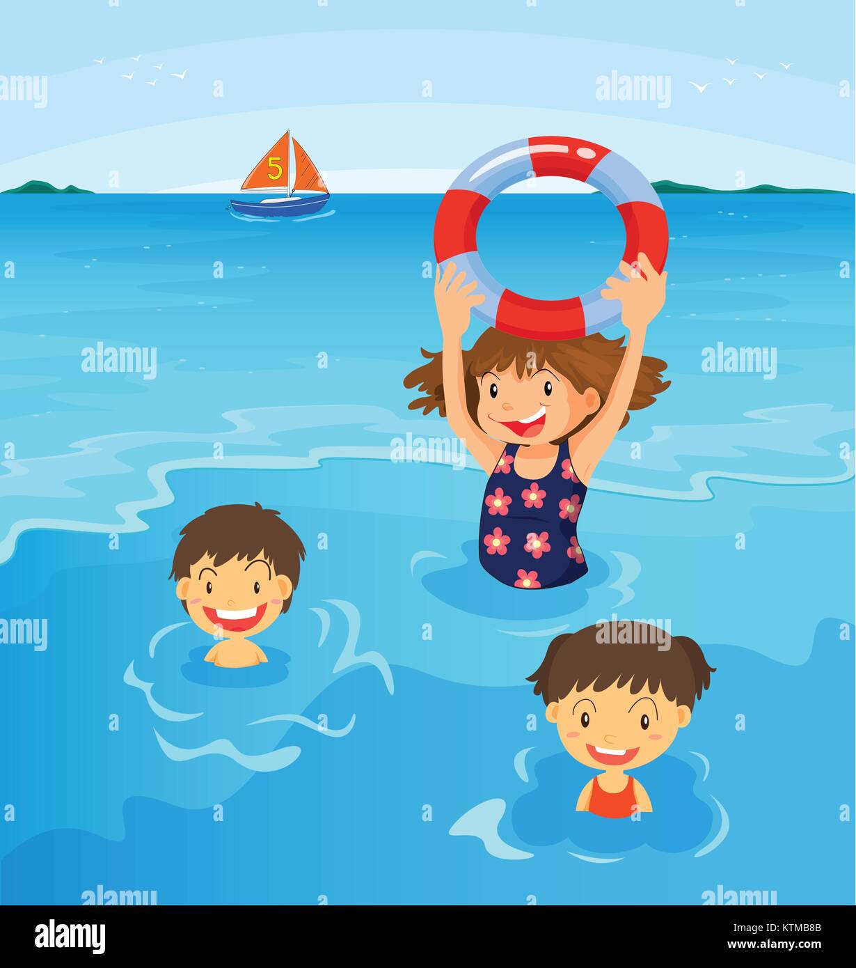 Los Ninos Nadando En El Mar Imagen Vector De Stock Alamy