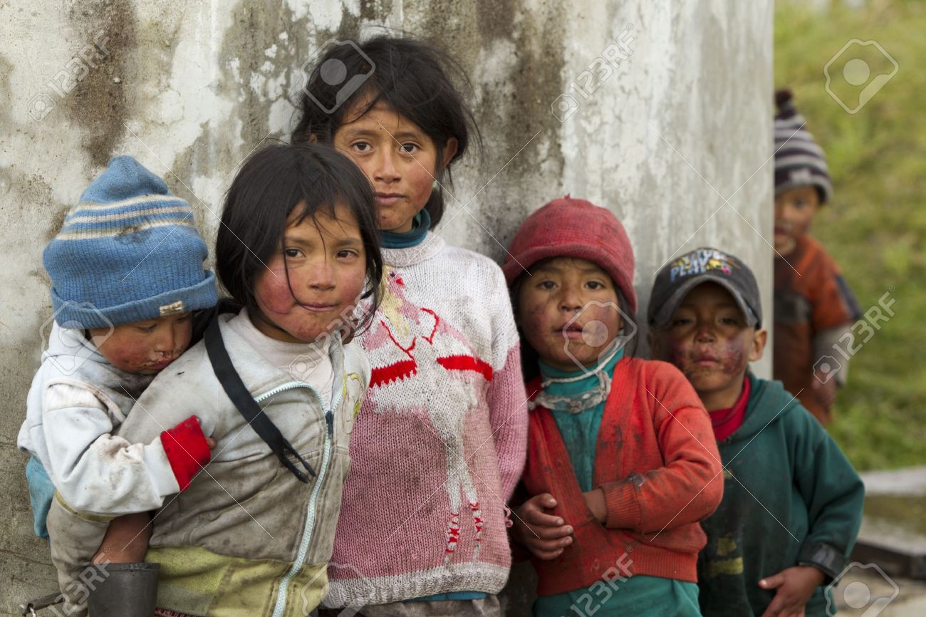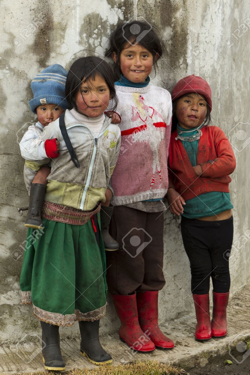 Ozogoche Ecuador 02 De Noviembre 2011 Grupo De Ninos Sucios Y Mal Vestidos Debido A La Falta De Educacion Y Servicios Basicos De Higiene Que Viven En Una Zona Rural De