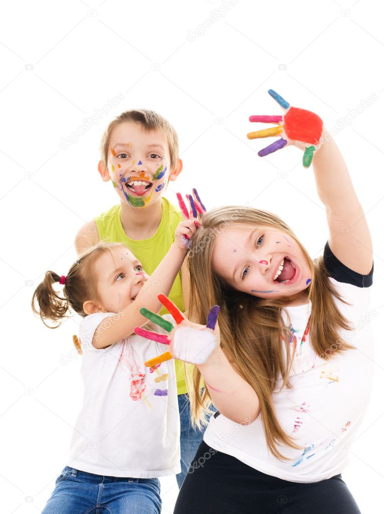 Ninos Jugando Con Pintura Ninos Sucios Despues De Jugar Canstock