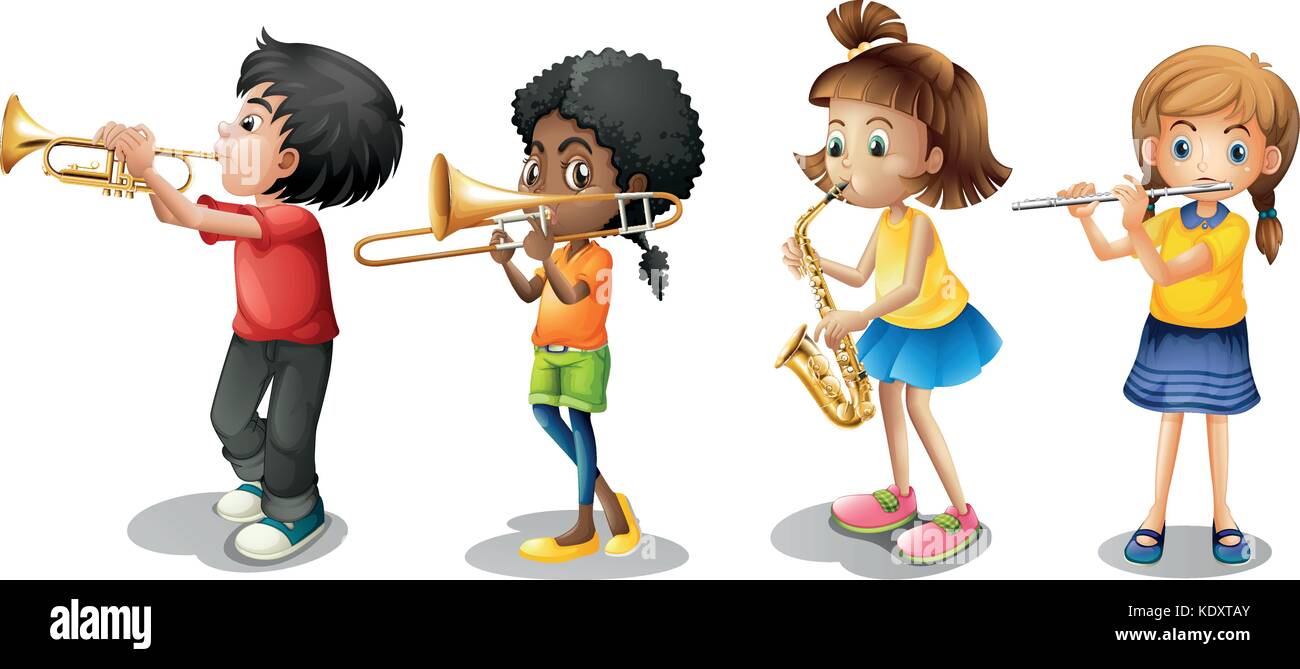 Cuatro Ninos En Una Musica Congriegan Los Ninos Que Tocan Los Instrumentos Musicales Persona Que Toca Diversos Instrumentos Mus Ilustracion Del Vector Ilustracion De Instrumentos Congriegan 122677050