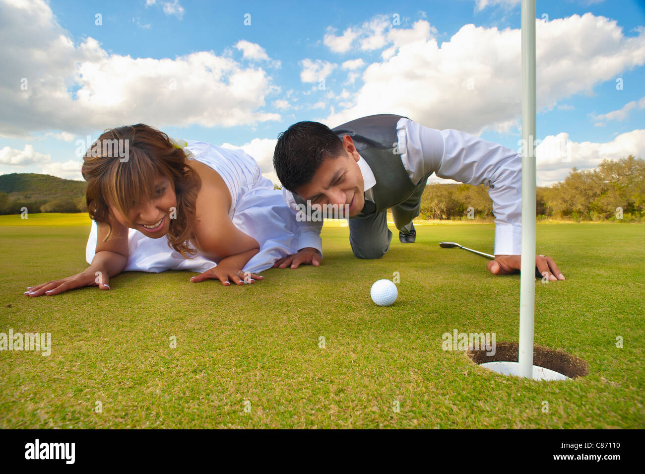 Pareja De Novios Jugando Al Golf Fotografia De Stock Alamy