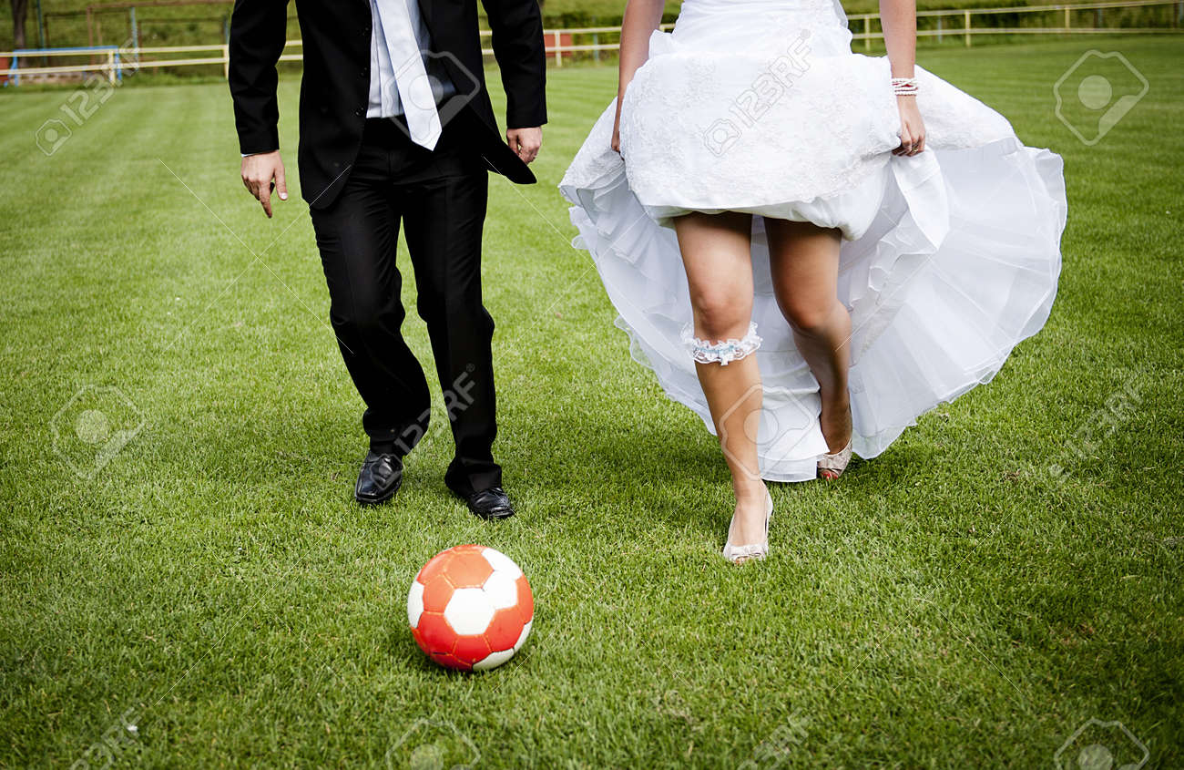 La Novia Y El Novio Estan Jugando En El Campo De Futbol Fotos Retratos Imagenes Y Fotografia De Archivo Libres De Derecho Image 17605596