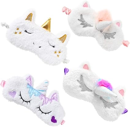 Lurrose 4 Piezas Unicornio Mascara Para Dormir Felpa Sombra De Ojos Unicornio Cuerno Con Los Ojos Vendados Para Dormir Siesta Viaje Amazon Es Belleza
