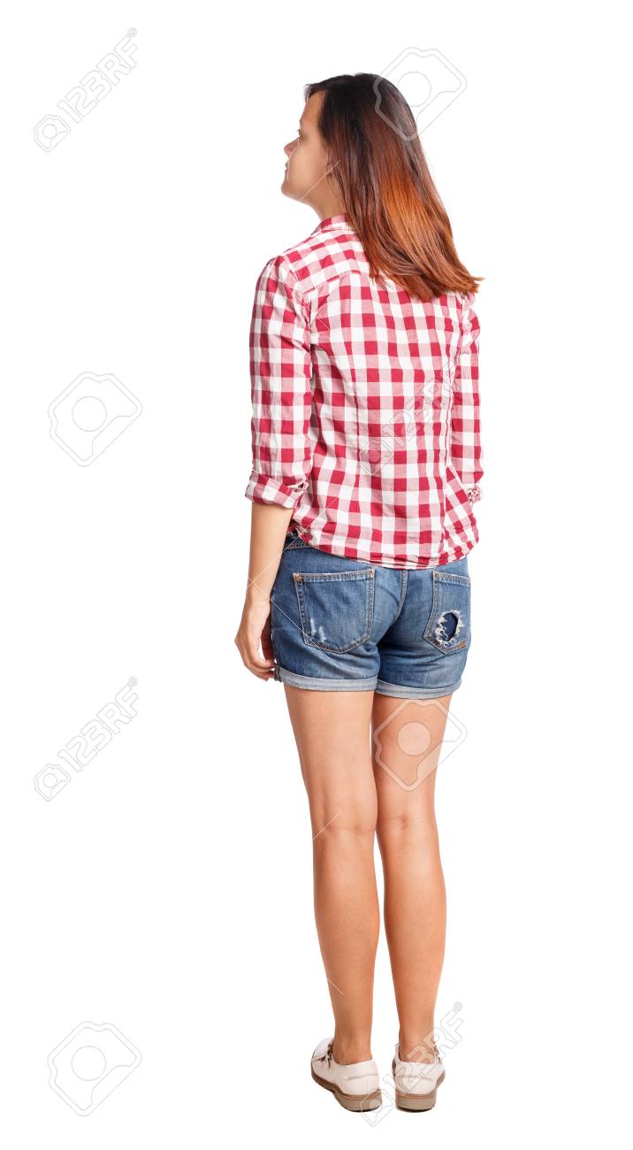 Vista Traseira De Pe Jovem E Bela Mulher Menina Assistindo Retrovisor Pessoas Colecao Visao Traseira Da Pessoa A Garota De Short Em Pe Fotos Retratos Imagenes Y Fotografia De Archivo Libres De