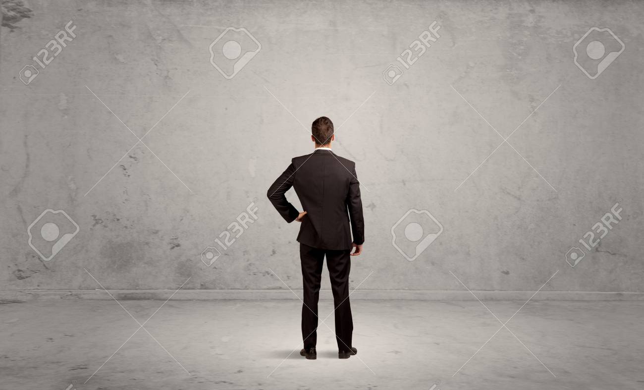 Uma Pessoa De Vendas Confusa Tendo Um Dilema De Pe Com As Costas No Conceito De Ambiente Urbano Cinza Vazio Fotos Retratos Imagenes Y Fotografia De Archivo Libres De Derecho Image 74380917