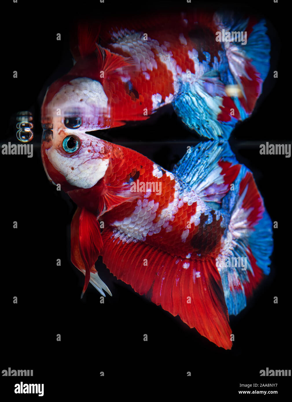 Fancy Galaxy Koi Betta Siameses La Lucha Contra Los Peces En Movimiento Con Fondo Negro Fotografia De Stock Alamy