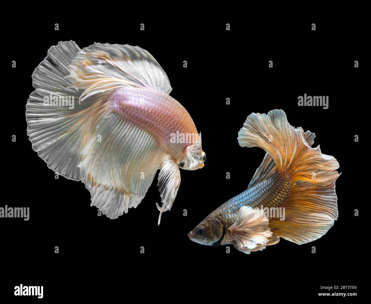 Hermoso Movimiento De Dos Peces De Lucha Sobre Fondo Negro Fotografia De Stock Alamy