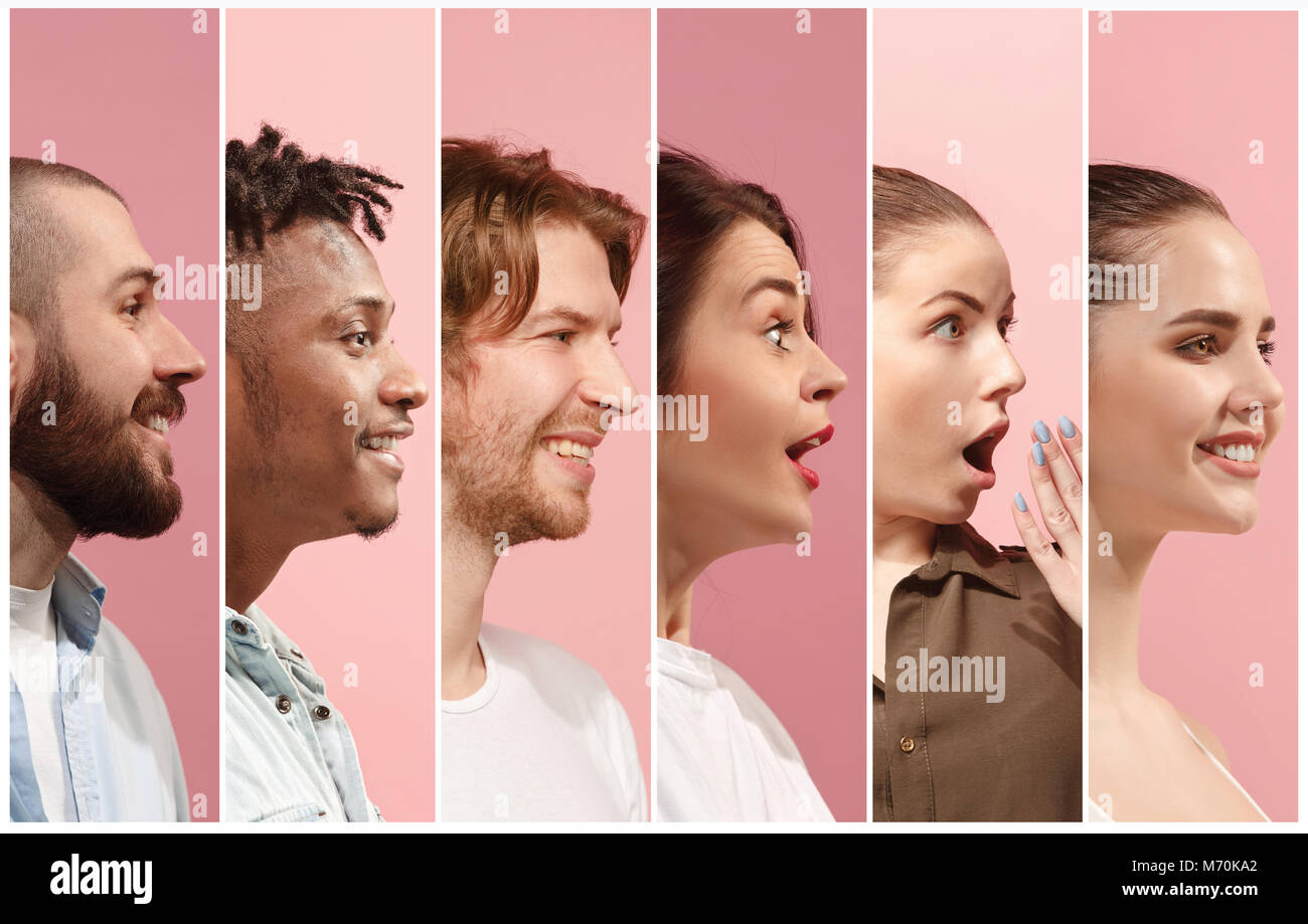 Perfiles De Personas Multiculturales Hombres Y Mujeres De Rosa Fotografia De Stock Alamy