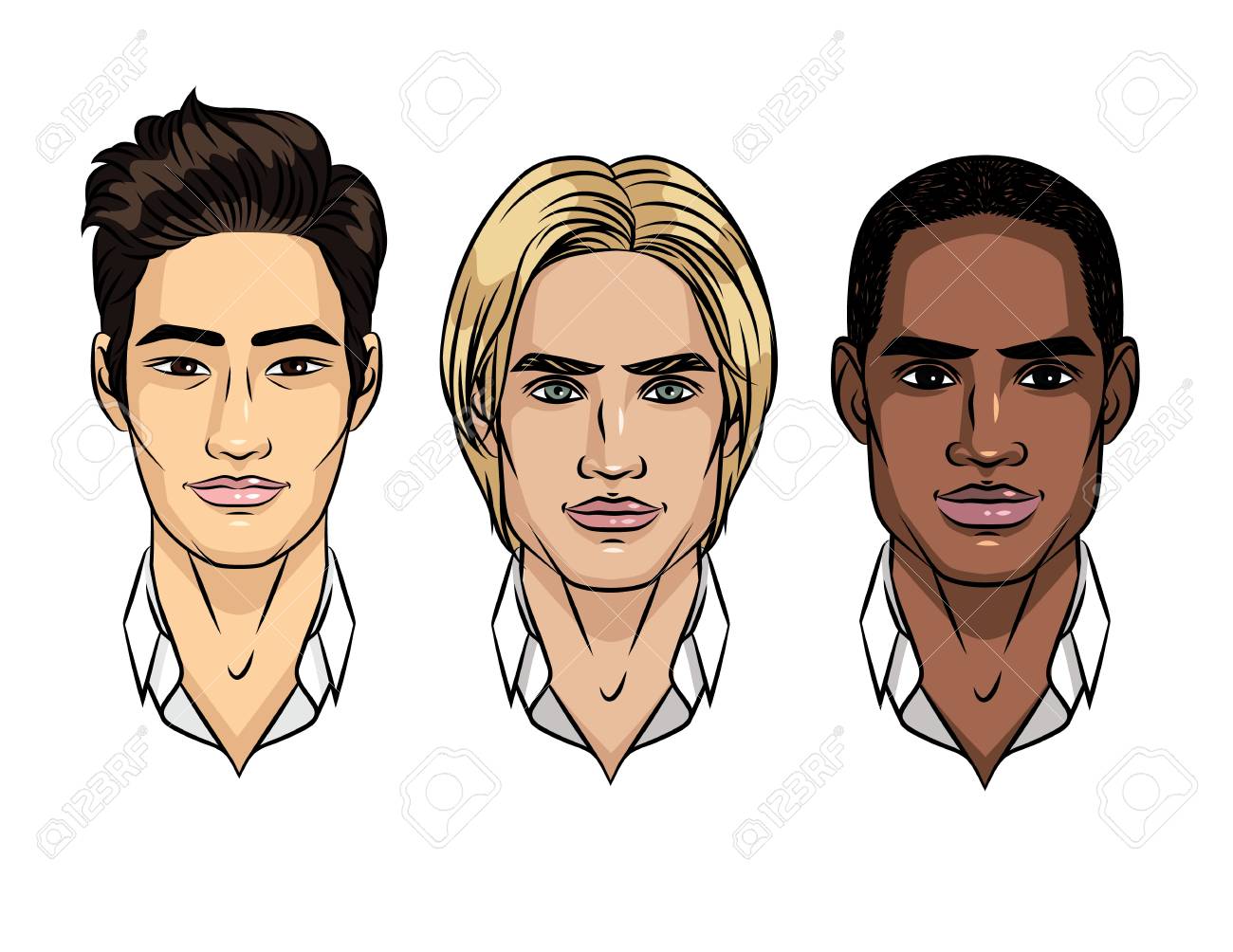 Vector Conjunto De Rostros De Hombres De Diferentes Nacionalidades Aspecto De Personas Asiaticas Europeas Afroamericanas Avatar Para Diferentes Razas Hombres Ilustraciones Vectoriales Clip Art Vectorizado Libre De Derechos Image 95611557