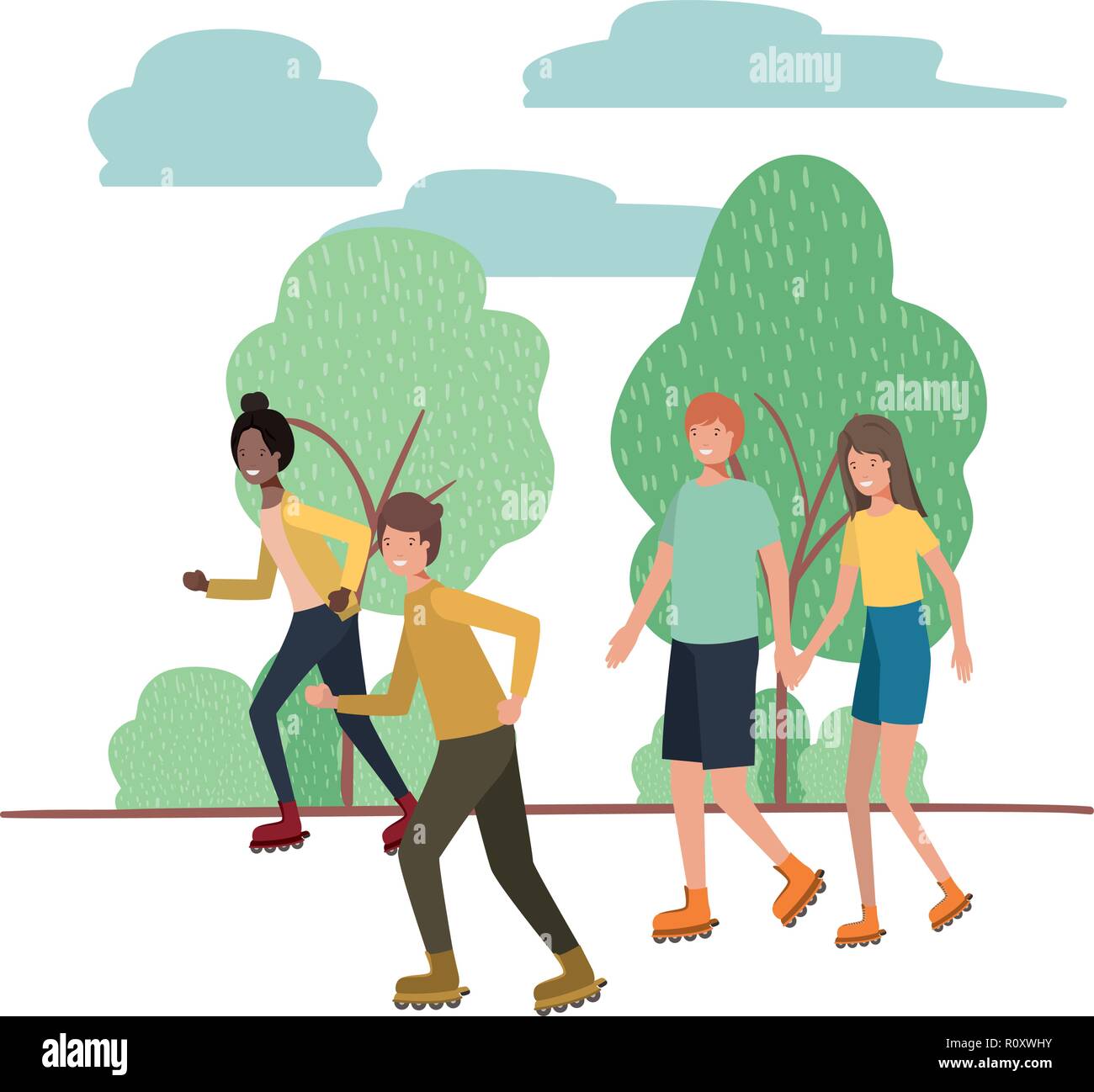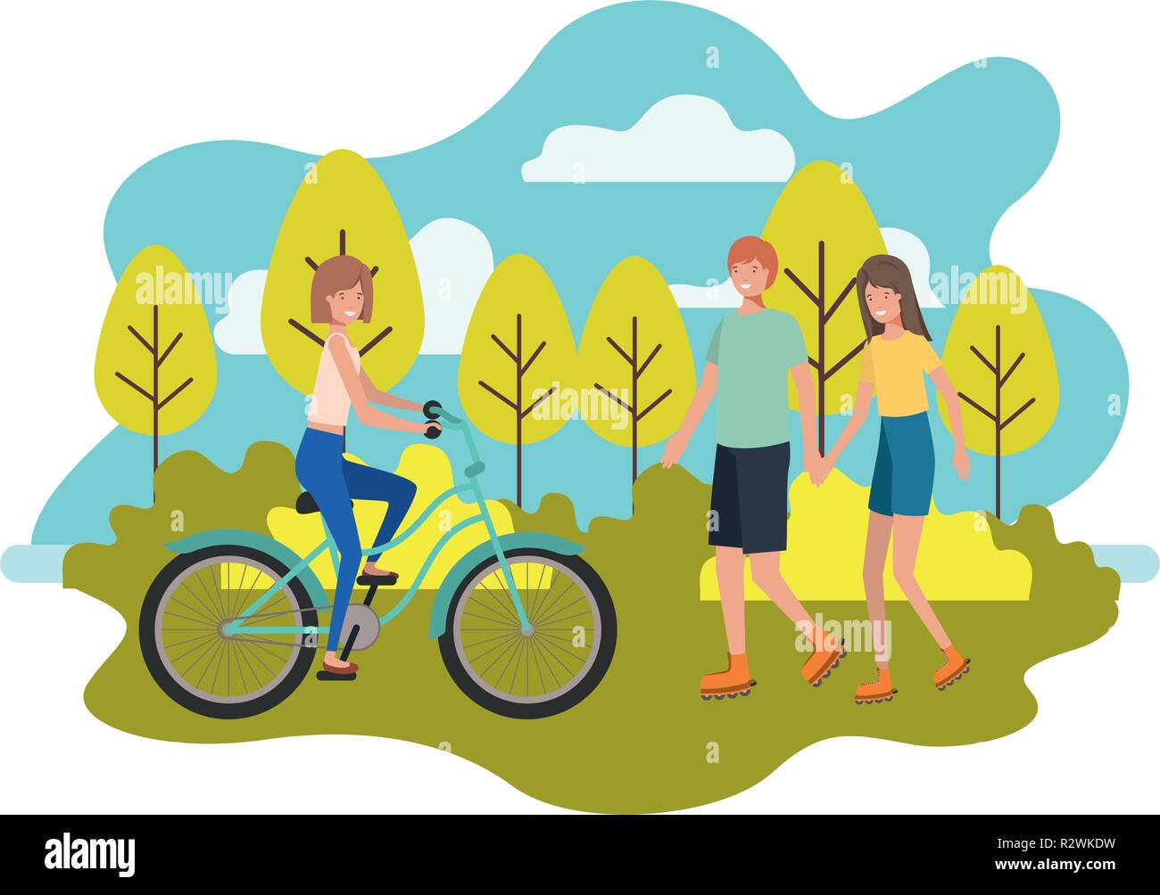 Grupo De Personas Practicando Deportes Extremos Vector Premium