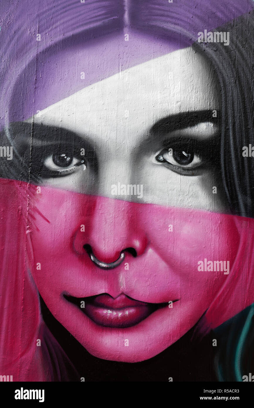 Graffiti Mujer Con Septum Piercing Nariz Penetrante Retrato Arte En La Calle Del Salon De La Fama Dusseldorf Dusseldorf Eller Fotografia De Stock Alamy