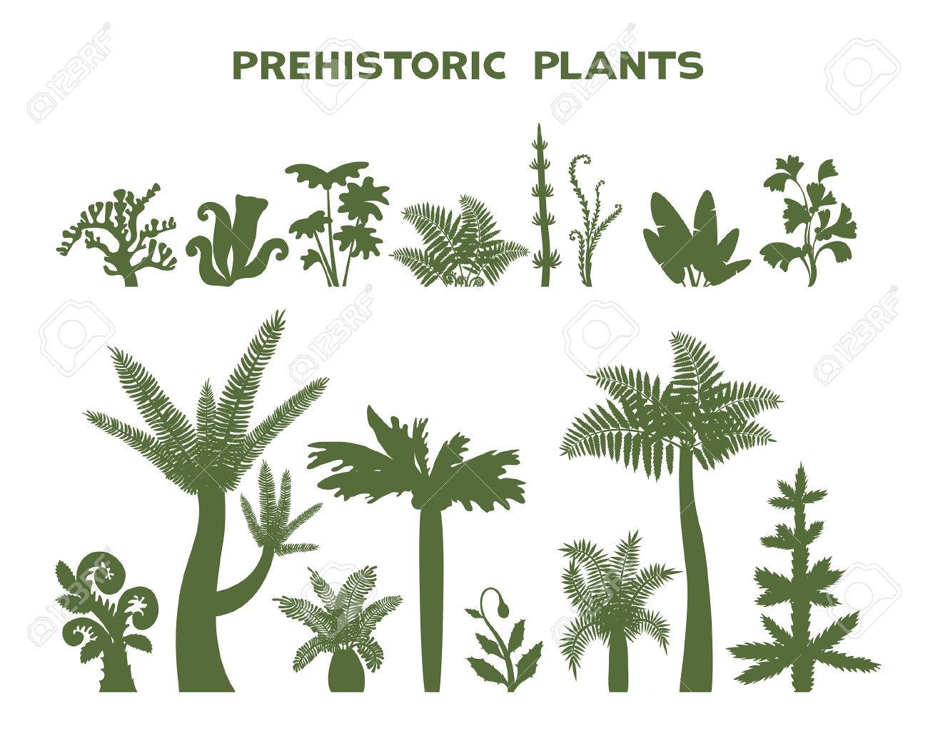 Ilustracion Vectorial Con La Coleccion Botanica Silueta De Plantas Prehistoricas Sobre Un Fondo Blanco Ilustraciones Vectoriales Clip Art Vectorizado Libre De Derechos Image 75462510