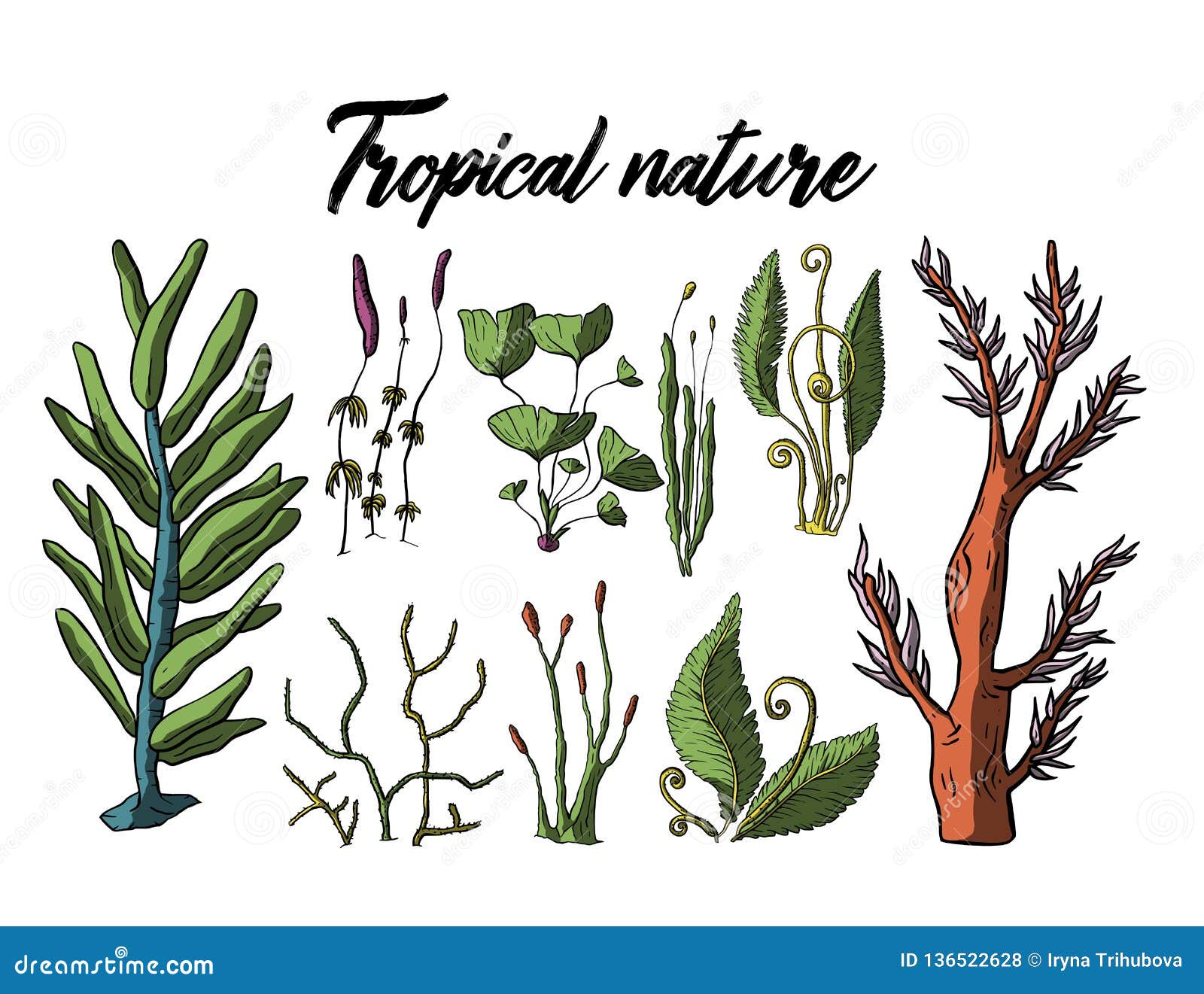 Plantas Prehistoricas Acuaticas Aisladas En El Fondo Blanco Diseno Exotico Pintado A Mano Canstock