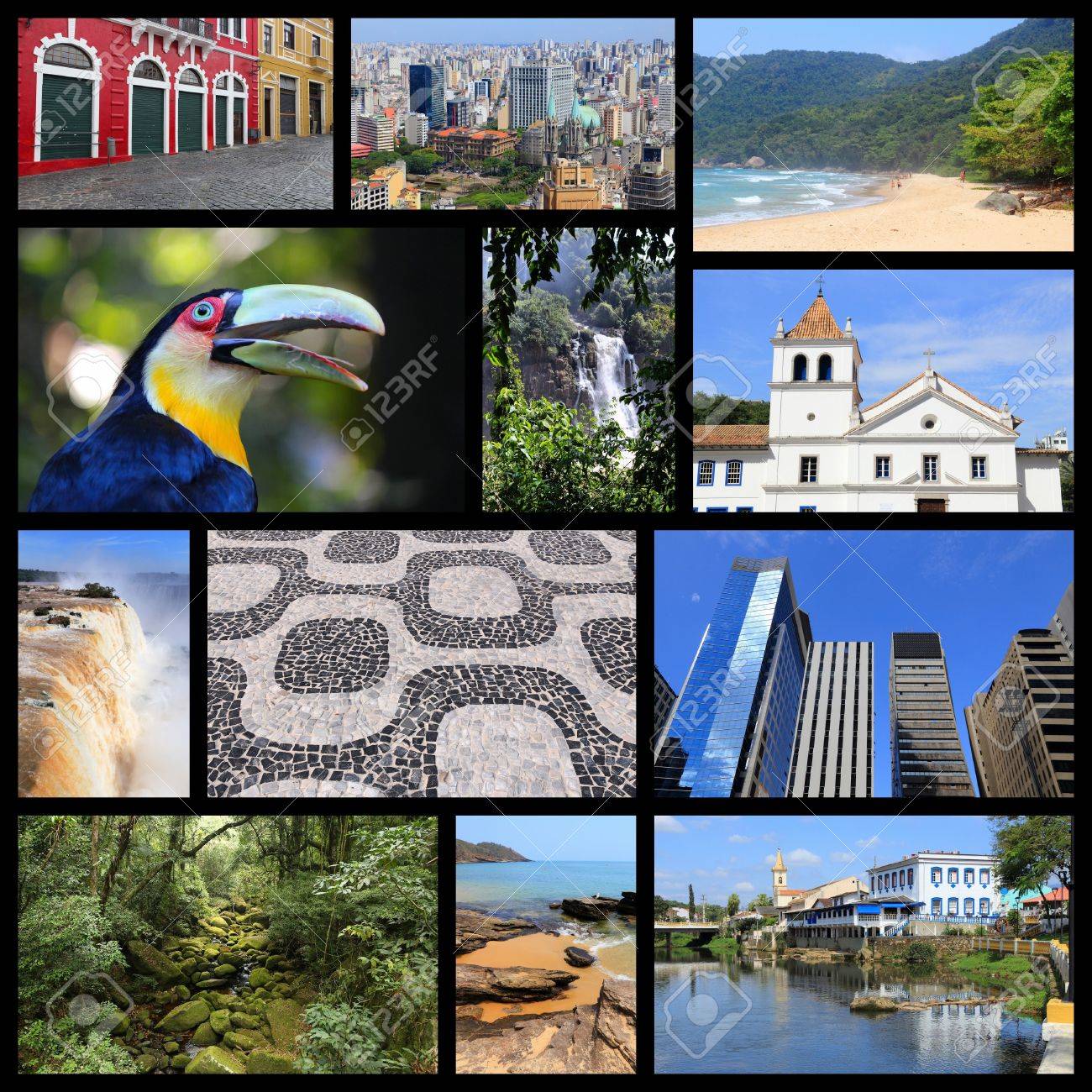 Collage De Viaje De Brasil Con Playas Selva Sao Paulo Rio De Janeiro Iguazu Y Curitiba Fotos Retratos Imagenes Y Fotografia De Archivo Libres De Derecho Image 76298390