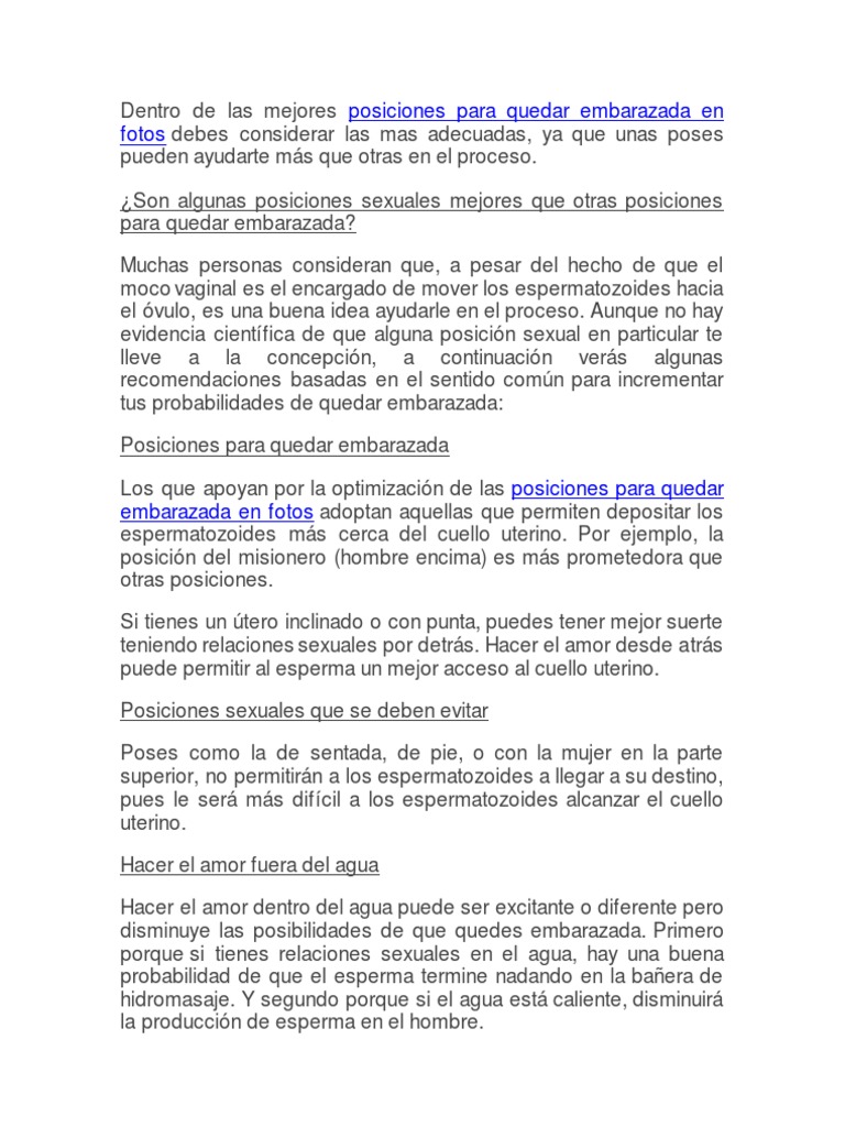 Que Posicion Es Mejor Para Quedar Embarazada Pof Gratuito