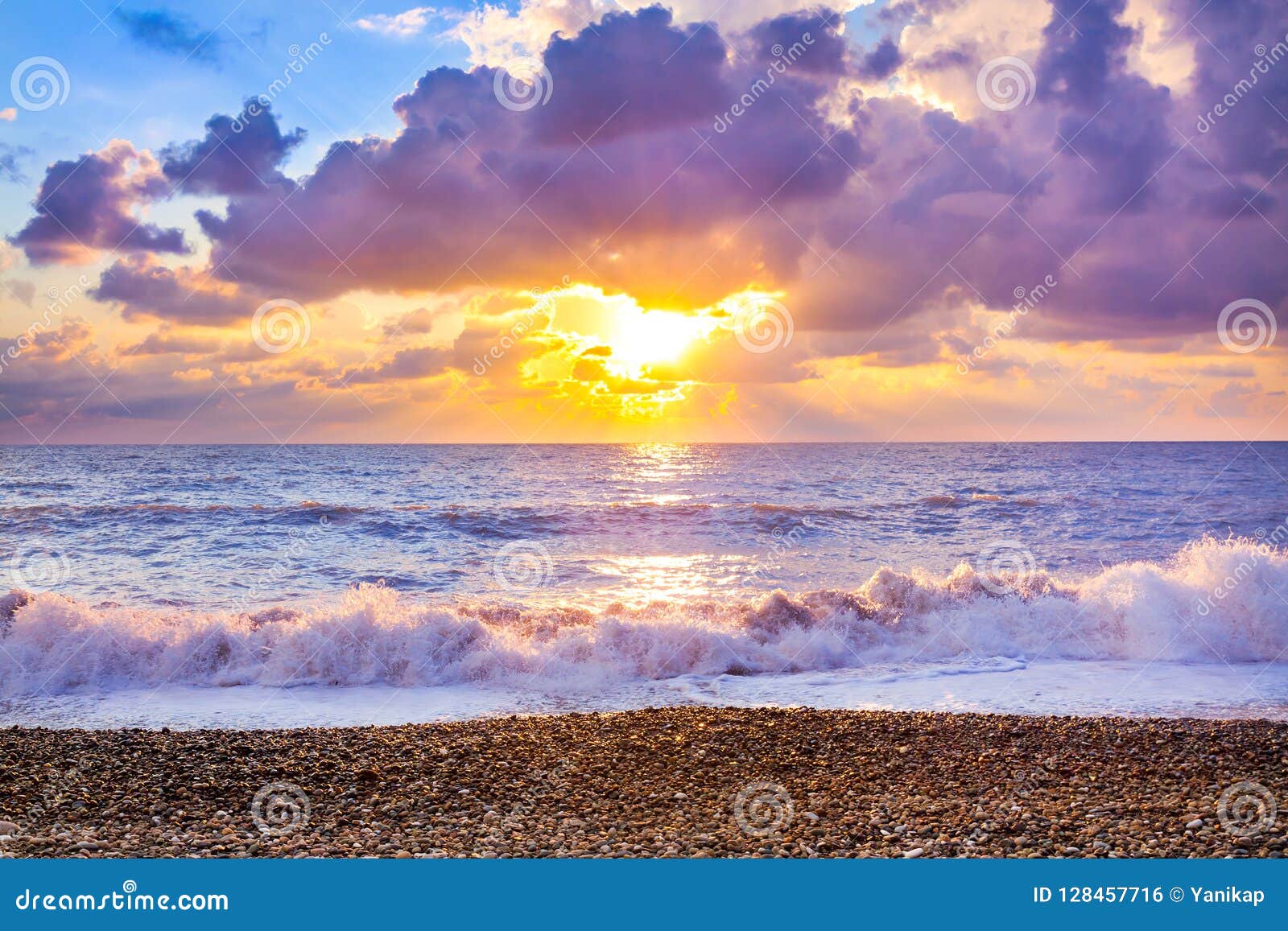 Paisaje Del Mar Con Una Puesta Del Sol Foto De Archivo Imagen De Puesta Paisaje 128457716