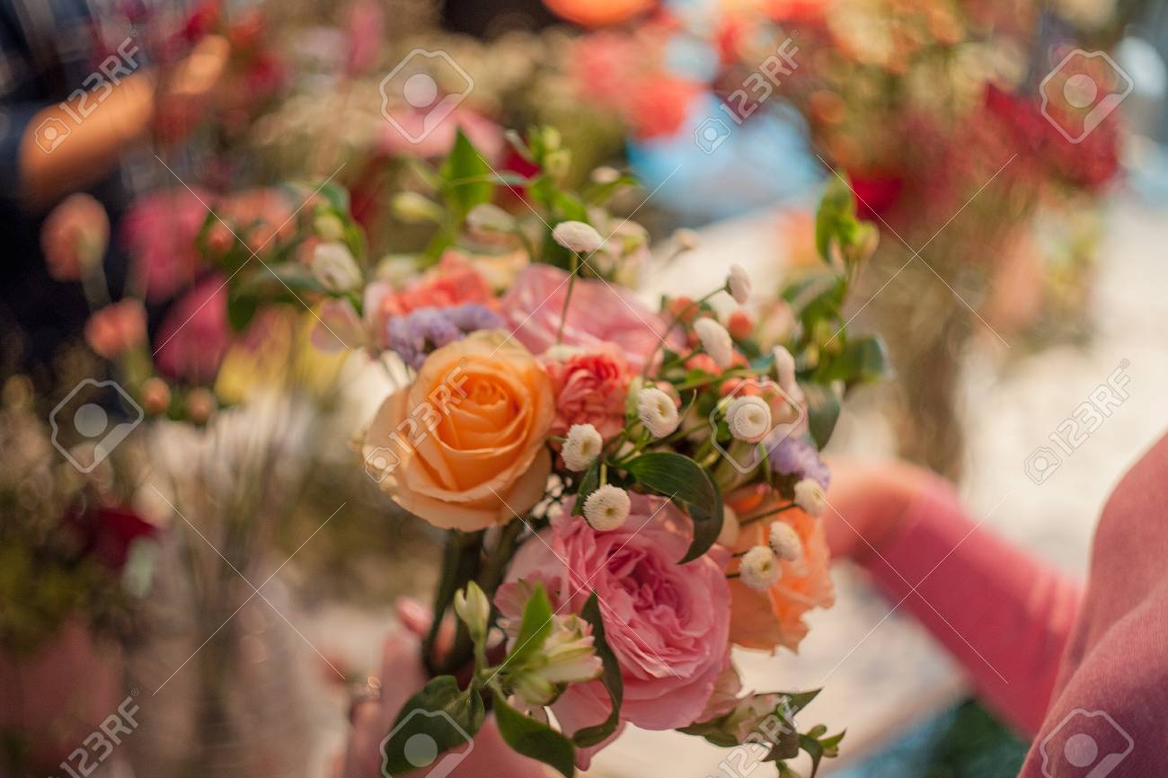 Taller De Floristeria Confeccion De Ramos Y Arreglos Florales Mujer Recogiendo Un Ramo De Rosas Enfoque Suave Fotos Retratos Imagenes Y Fotografia De Archivo Libres De Derecho Image 70110807