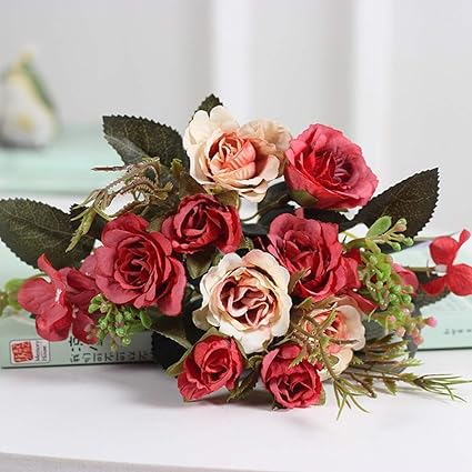 Lizongfq Flores Artificiales Hermosas Rosas Pequenas Interior Tricolor Flores Falsas Opcionales Flor Vintage Decoracion De La Boda De La Pared De La Casa Paquete De 3 Rosa 3 Amazon Es Hogar