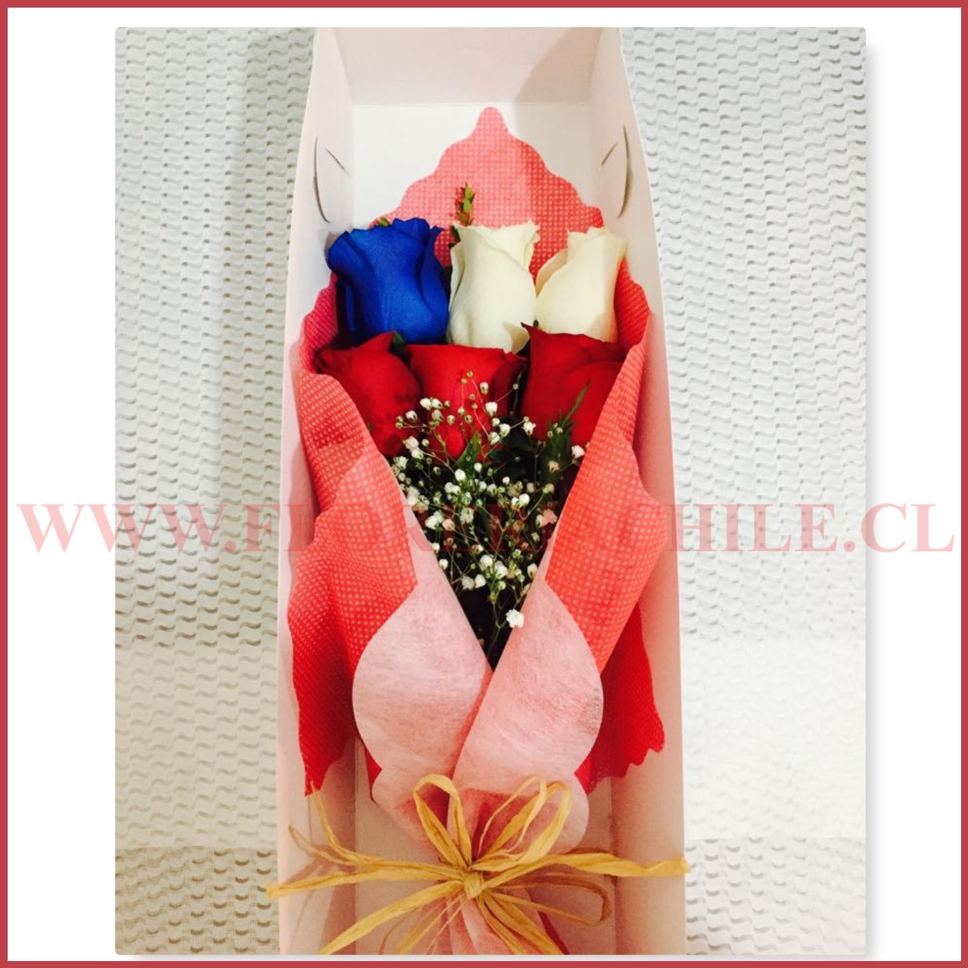 Caja De 06 Rosas Tricolor Floreria Chile