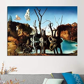 Mhy Arte De La Lona Salvador Dali Pintura Cisnes Reflejando Elefantes Cuadros De Pared Para Sala De Estar Decoracion Para El Hogar Impreso 40cm X60cm Sin Marco Amazon Es Hogar
