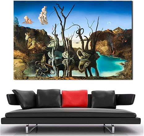Ad Arte De La Lona Salvador Dali Pintura Cisnes Reflejando Elefantes Cuadros De Pared Para Sala De Estar Decoracion Para El Hogar Impreso 60x90cm Sin Marco Amazon Es Hogar