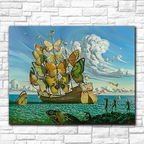 Ruyun Moda Arte De La Pared Salvador Dali Pintura Mariposa Barco Pared Cuadros Para Sala De Estar Decoracion Del Hogar Pinturas Impresas 60cm X90cm Sin Marco Amazon Es Hogar