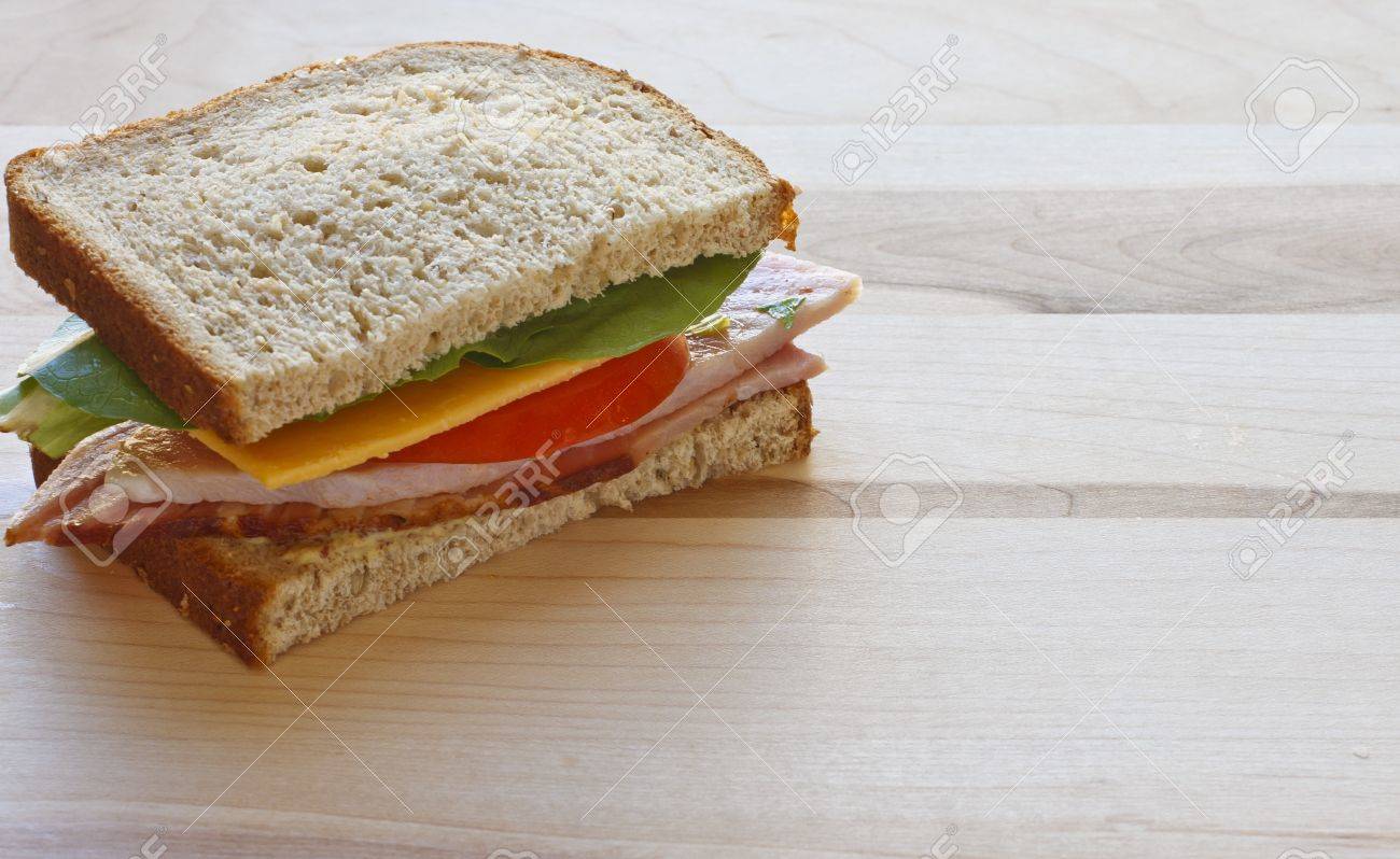 A Half Ham And Cheese Sandwich With Lettuce And Tomato On A Wood Stock Photo Picture And Royalty Free Image Image 12902613
