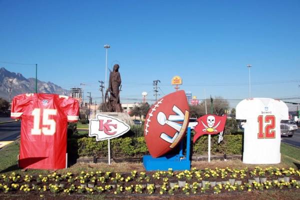 Super Bowl Contagia Al Municipio De Santa Catarina Imagen Decoran Entrada Con Imagen De Los Equipos Rivales Publimetro Mexico