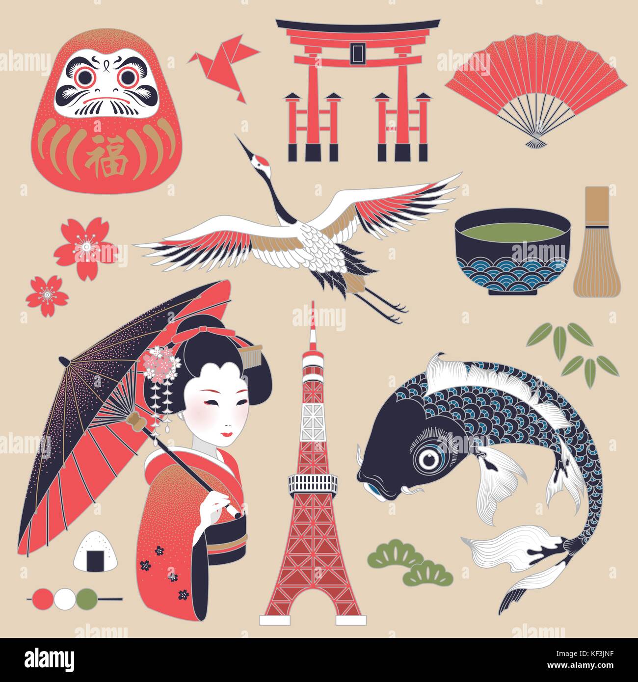 Encantador Juego De Simbolos Culturales De Japon Platos Deliciosos Y Puntos De Recogida Aislado Sobre Fondo Blanco Imagen Vector De Stock Alamy