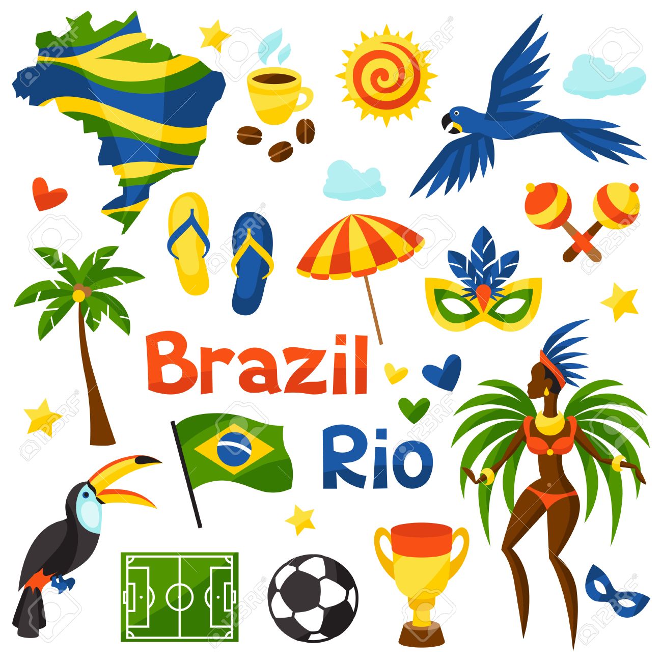 Coleccion De Brasil Estilizado Objetos Y Simbolos Culturales Ilustraciones Vectoriales Clip Art Vectorizado Libre De Derechos Image 49411013